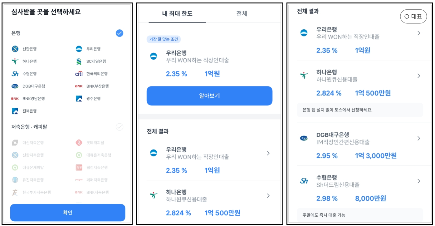 ▶토스 대출 비교 플랫폼은 기본적으로 사용자의 편리함을 가지고 있습니다. 아주 쉽게 대출 비교를 할 수 있습니다. 다수의 금융권에 개별적으로 대출 비교할 필요가 없이 대출 비교 버튼만 누르면 금융사의 확정 조건을 빠르게 알려주다 는 것만으로도 충분히 매력적입니다.