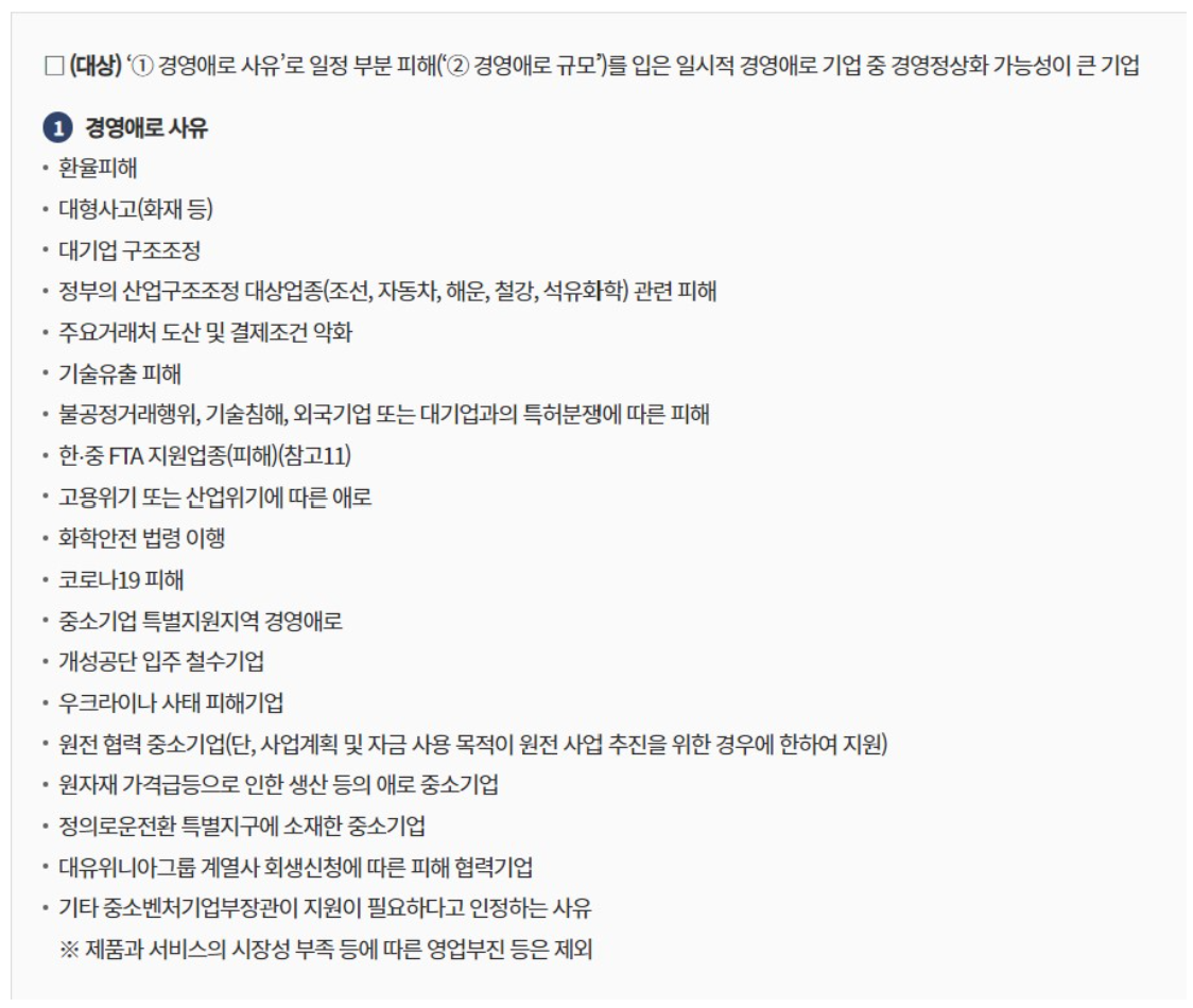🔹다음의 경영애로 사유 및 매출 감소여부 두가지 요건을 모두 충족하는 소상공인