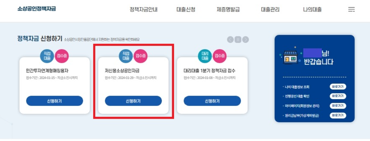 저신용 소상공인 자금 신청 대상 조건을 확인 후 대상 조건을 충족하신다면 신용 관리 교육을 이수 후 해당 서류를 확인 준비하시고 소상공인 정책 자금 사이트에 접속하셔서 저신용 소상공인 자금 신청하기를 선택 "클릭" 안내에 따라 대상 확인 및 개인정보 동의 자료 제출 등의 절차에 따라 신청하시면 됩니다.