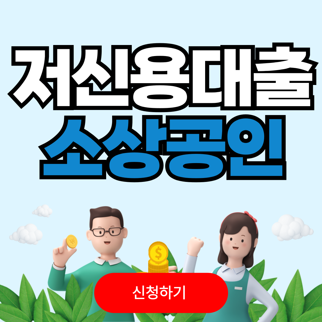 저신용 소상공인 대출 신청조건은 개인신용평점이 낮고, 신용관리교육을 이수한 분이 신청할 수 있습니다. 1천만원 미만인 경우 대출신청 실행이 불가하며, 최대 3,000만 원까지 한도가 나오며, 기준금리 연 5.49%, 상환기간 5년(2년 거치, 3년 상환), 중도상환수수료 면제 조건으로 진행됩니다.