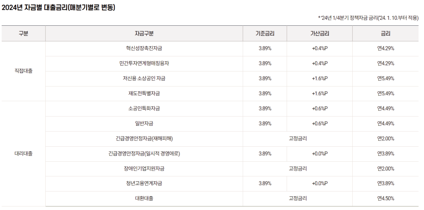 🔹대출금리 : 정책자금 기준금리 (변동금리)