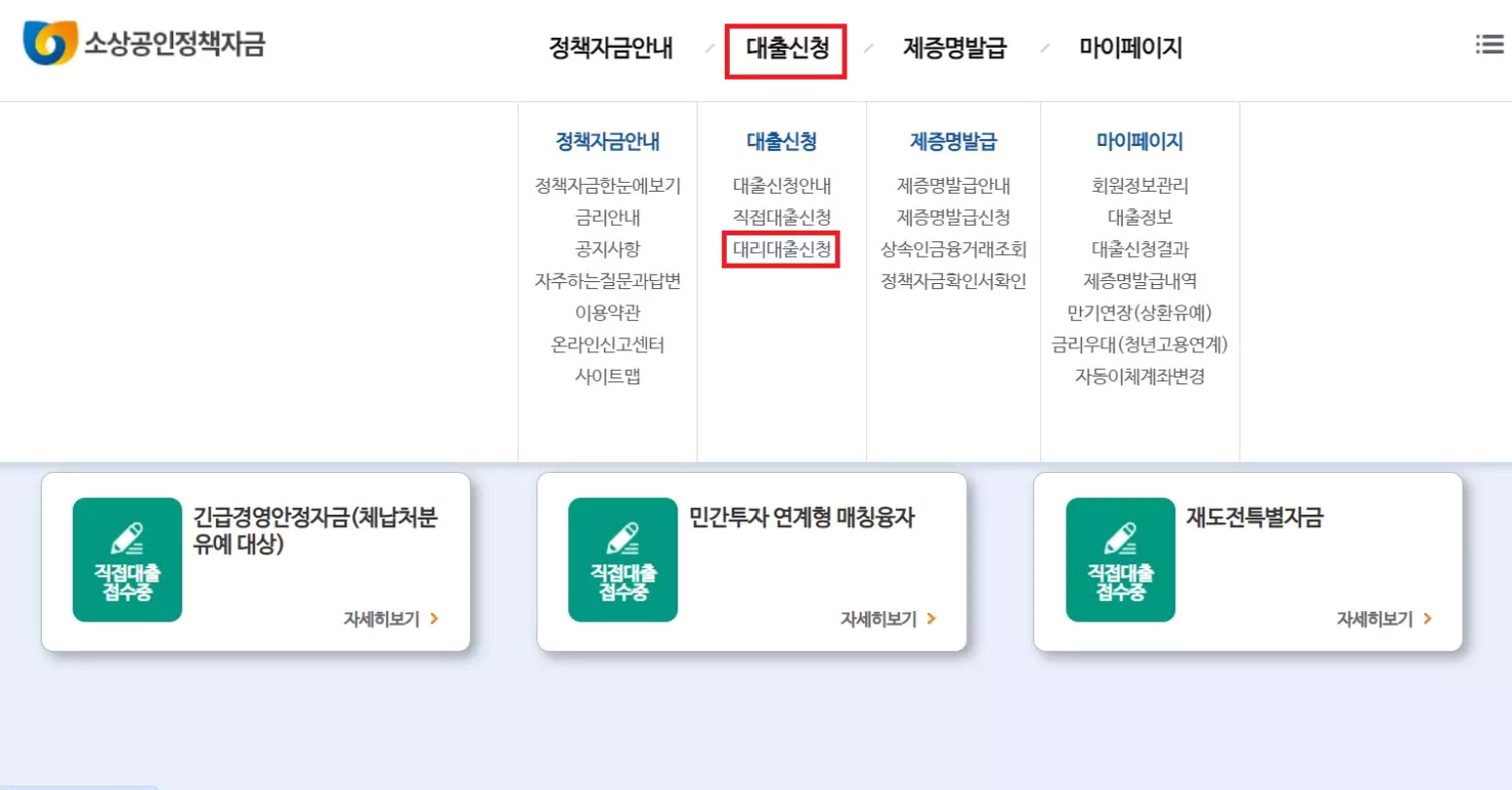 [대출신청] 및 [대리대출신청] 선택